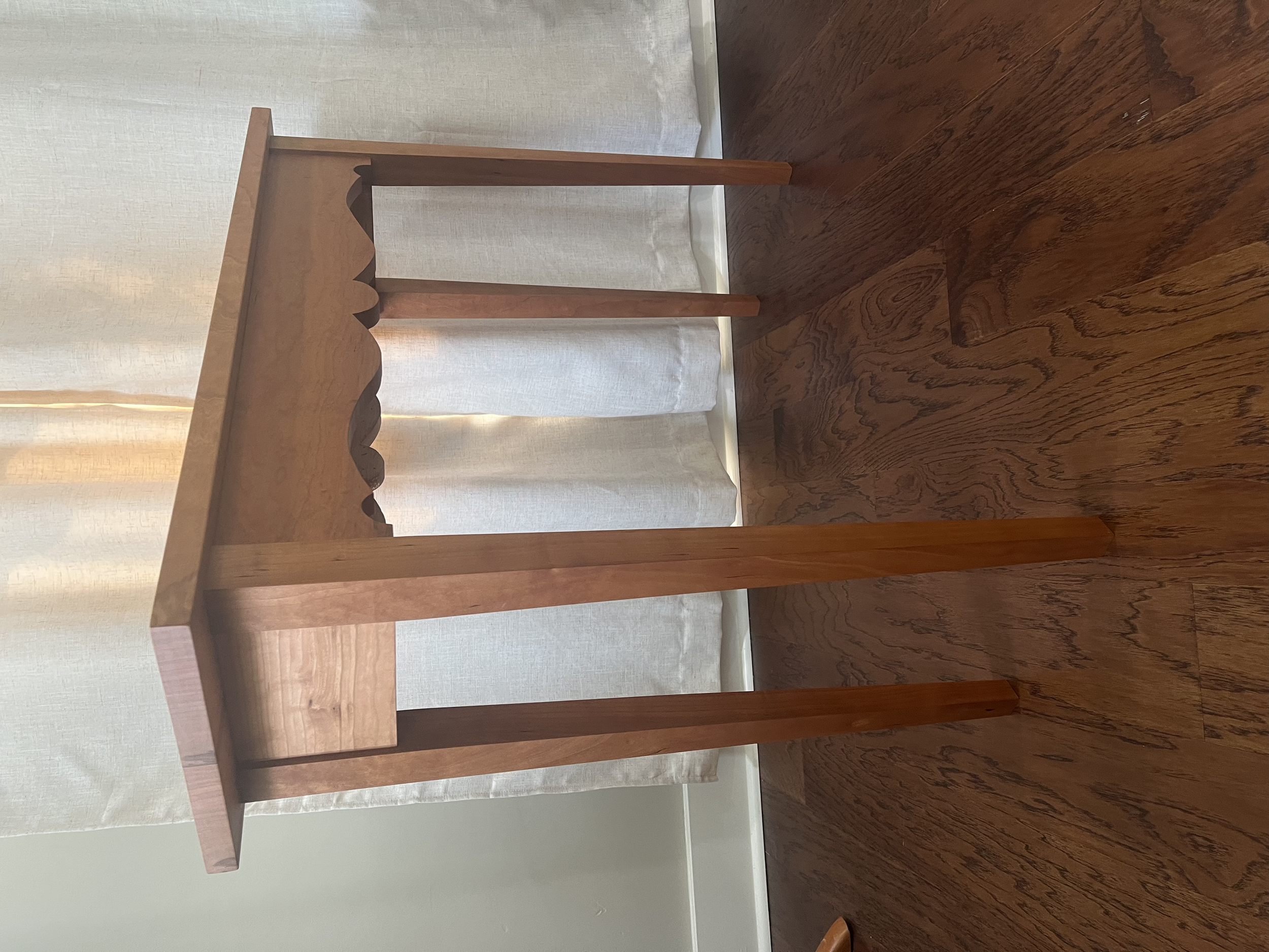 Slightly more ornate than a typical Shaker-style table, this cherry table features a slim profile and simple shapes to embody the essence of country furniture.