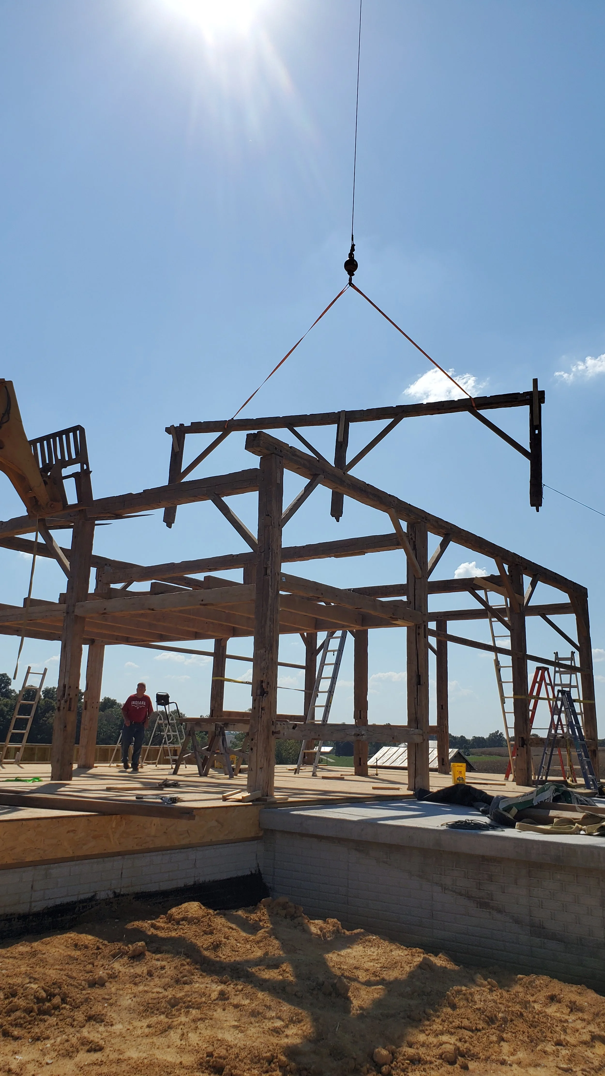 This is a frame that I helped Evan over at Divine Heritage Barns raise. It is a hand-hewn reclaimed barn that will live a new life as a family home.